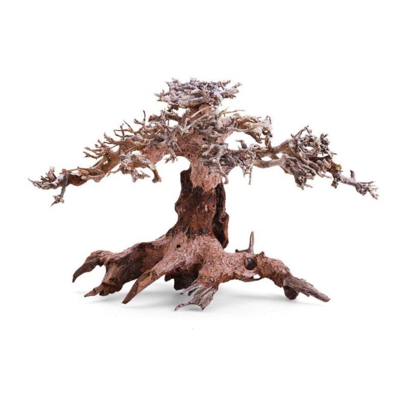 Bonsáis construidos con troncos y masilla (no tóxica), para su utilización en acuarios y terrarios. Ideales para decoraciones naturales paisajísticas 'Aquascaping'. Para pegar o atar a sus pequeñas ramas musgo natural (Weeping, Navidad, Flame…) o plantas naturales (Anubias, Hydrocotyle…), obteniendo como resultado un bello aspecto muy decorativo y totalmente natural.