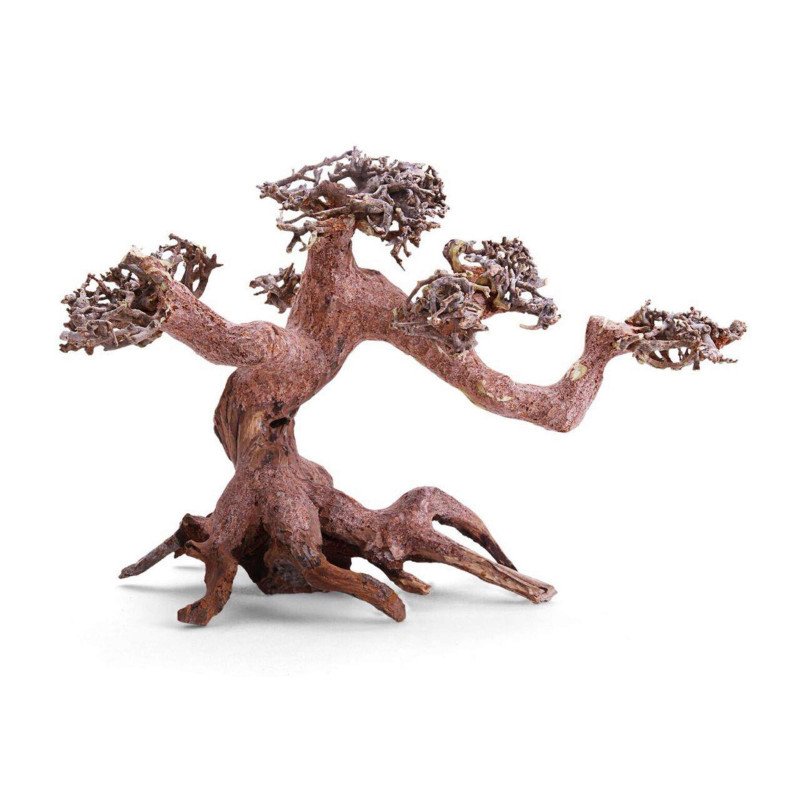 Bonsáis construidos con troncos y masilla (no tóxica), para su utilización en acuarios y terrarios. Ideales para decoraciones naturales paisajísticas 'Aquascaping'. Para pegar o atar a sus pequeñas ramas musgo natural (Weeping, Navidad, Flame…) o plantas naturales (Anubias, Hydrocotyle…), obteniendo como resultado un bello aspecto muy decorativo y totalmente natural.
